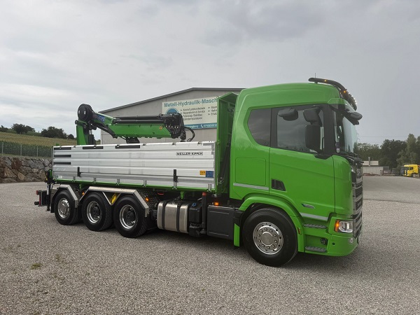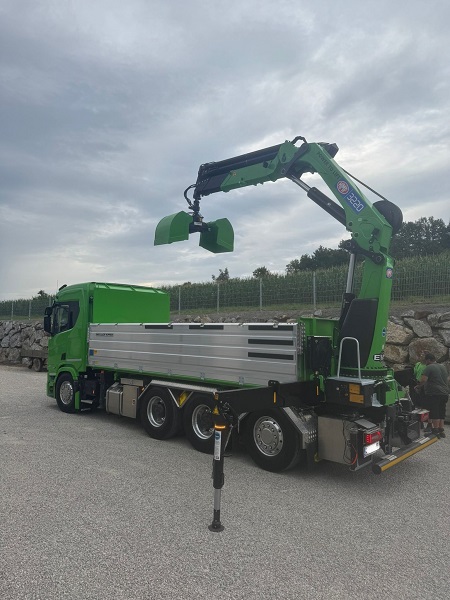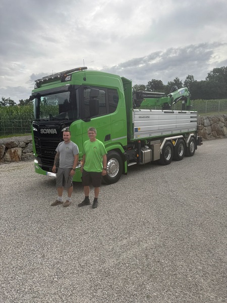Übergabe Huemer / HMF 3220-K6 Veröffentlicht: 14. Juli 2025 Auslieferung eines neuen HMF-Kranes 3220-K6 auf LKW Scania Heck fix montiert.